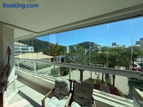 Offering sea views, Lindo apartamento perto da praia is an accommodation situated in Florianópolis, 200 metres from Praia de Canasvieiras and 19 km from Floripa Mall. This property offers access to a balcony and free private parking.