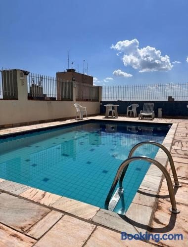 Set in Ribeirão Preto, Flat Vintage offers accommodation with rooftop pool, free WiFi and free private parking for guests who drive. Guests can benefit from a balcony and a sun terrace.