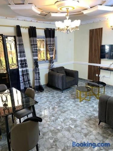 Situated in Bafoussam, Résidence REHA, appart 2CH features accommodation with free private parking. The apartment is composed of 1 bedroom, a fully equipped kitchen, and 2 bathrooms. A flat-screen TV is available. The accommodation is non-smoking.