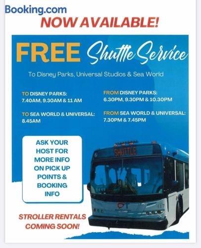 Located in Orlando, Family size Resort Apartment with Kitchenette, Free Disney parks shuttle provides accommodation with private pool, free WiFi and free private parking for guests who drive. The air-conditioned accommodation is 5.