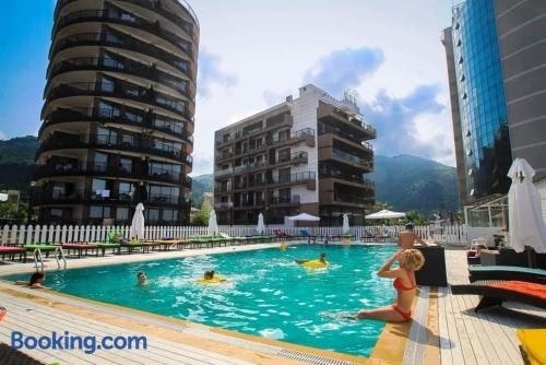Offering a seasonal outdoor swimming pool and mountain view, Gonio Beachfront - Mgzavrebi Sea View is situated in Batumi, 1.3 km from Gonio Fortress and 15 km from Ali and Nino Monument.
