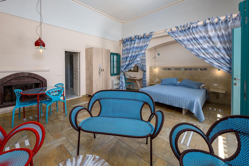 Passion Blue Villas is set in Oía, in a historic, renovated XIXth century stone house. The accommodation is air conditioned and offers views over the Santorini caldera and sea.