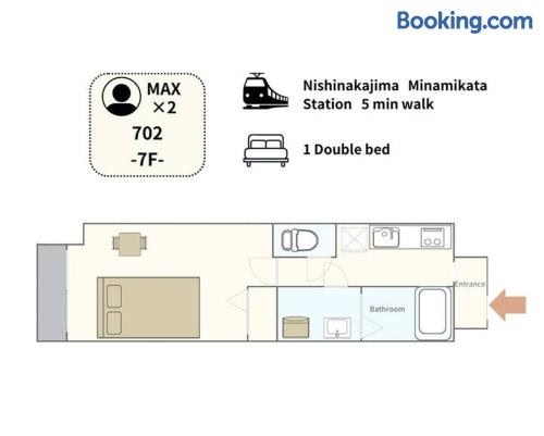 Set in Osaka, less than 1 km from Zenkyuji Temple and a 16-minute walk from Kamitsu Shrine, Locanda Shinosaka 702 ロカンダ新大阪 702 offers air-conditioned accommodation with a balcony and free WiFi. It is situated 1.