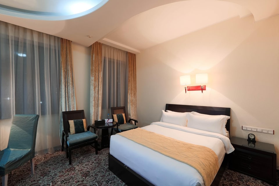 Jannat Regency Hotel is located in a residential area of Bishkek, within a 15-minute drive from the city centre. It features a wellness centre and a gym. Free Wi-Fi and free parking are provided.