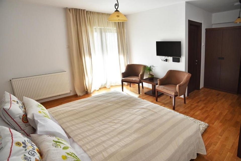 Surrounded by a broadleaf forest and set on a hill, 30 km from Buzău, Cetatuia offers accommodation with free WiFi, an à la carte restaurant, and a terrace. Rooms overlook the forest, and are equipped with a flat-screen TV with satellite channels.