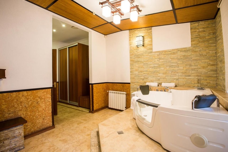 Located in a quiet area of the Partisan Glory Park, a 25-minute walk to Boryspilska Metro Station, Spa-Hotel Myslyvskiy Dvir offers a spa centre with a sauna, steam bath and indoor swimming pool.